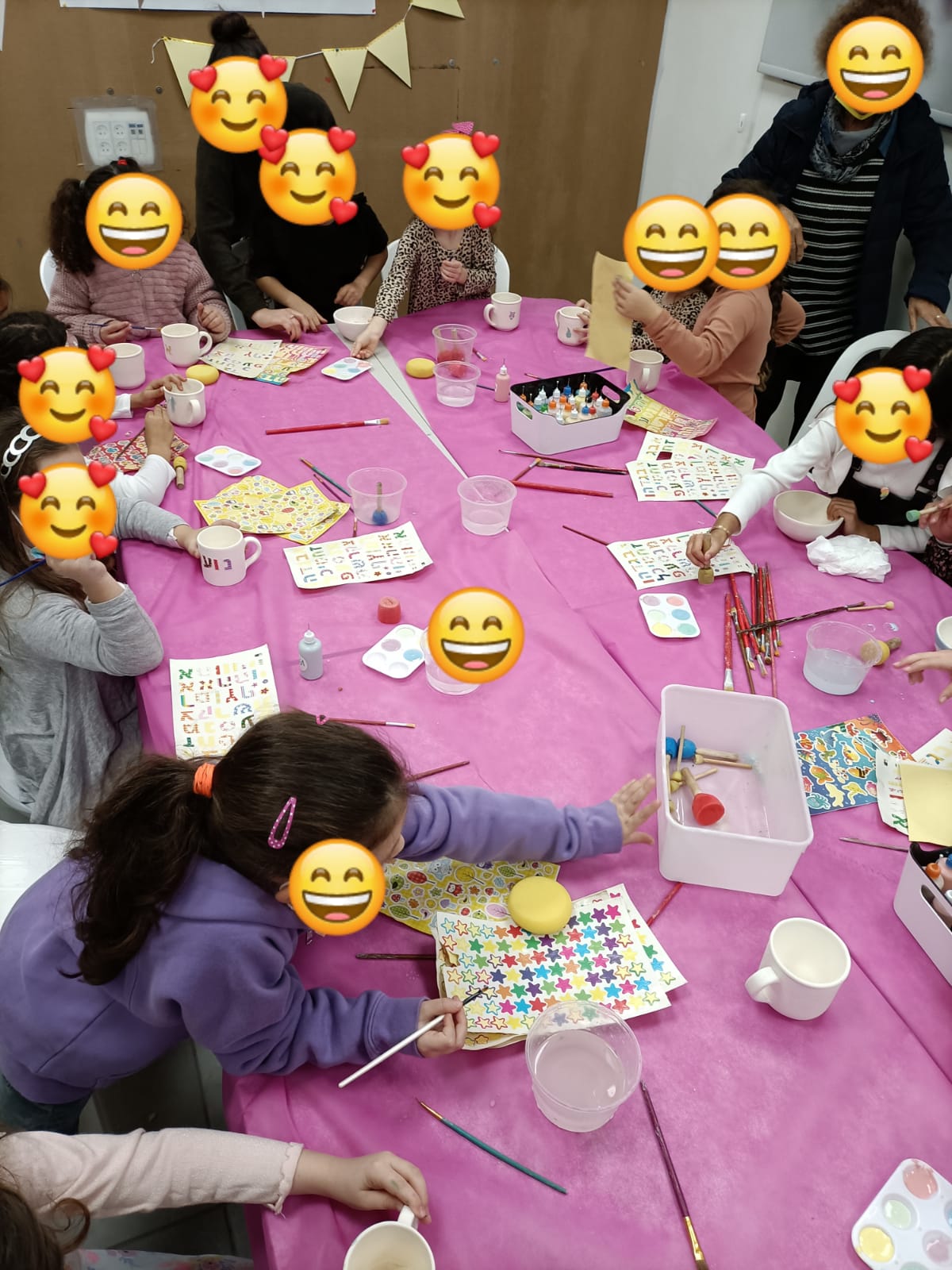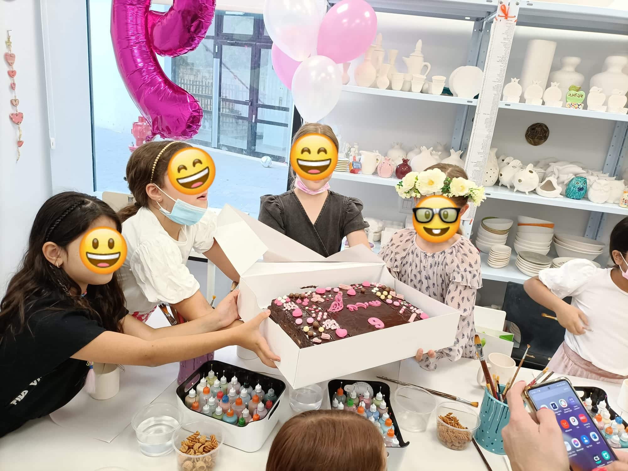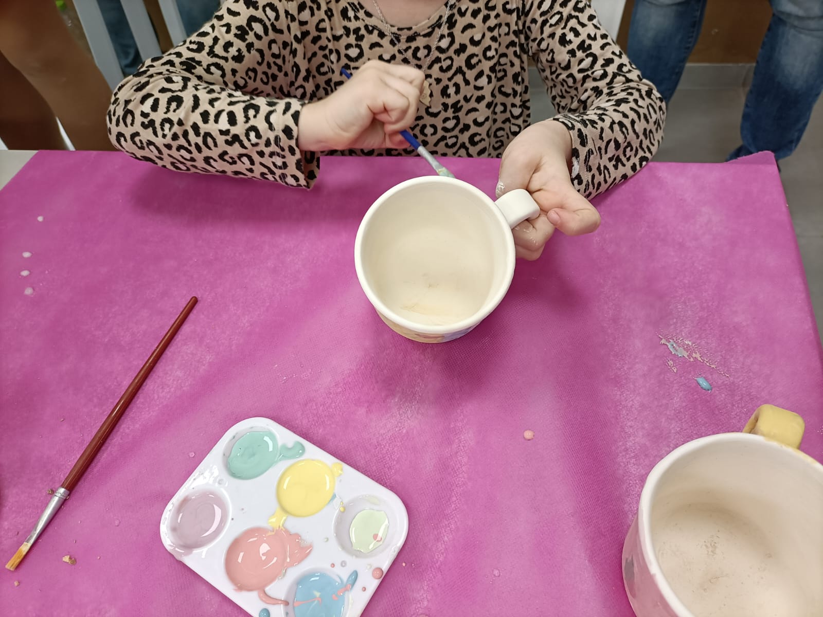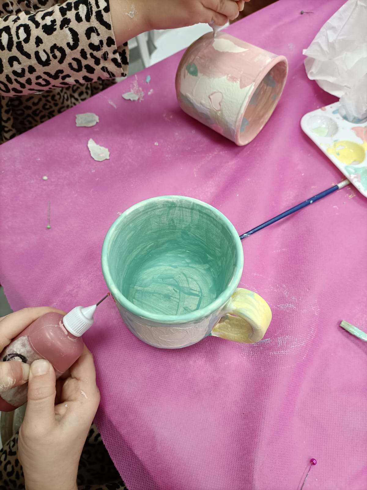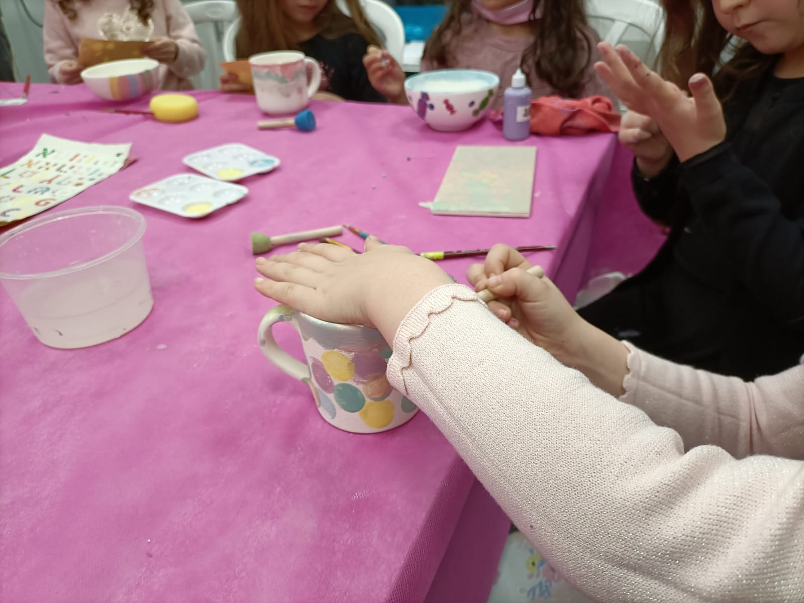 הדרכת צביעת כלי קרמיקה, הילדים לומדים מגוון טכניקות לצביעה.